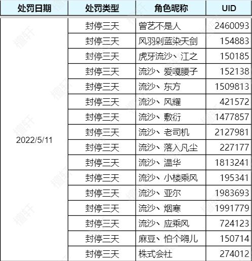 5月10日恶意组队封停公告