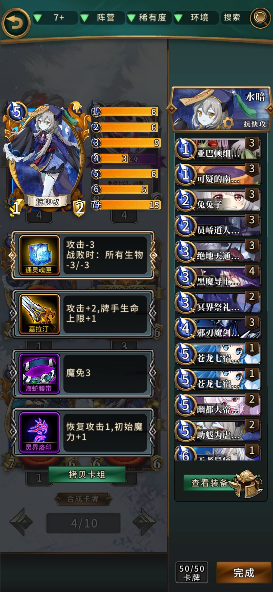 按目前环境来看狐狸和白绿和水族会普遍比较多,其他职业遇到的比较少,因此卡组构筑更偏前期,通过解场战场保证快速做完海拉任务来压制对手。