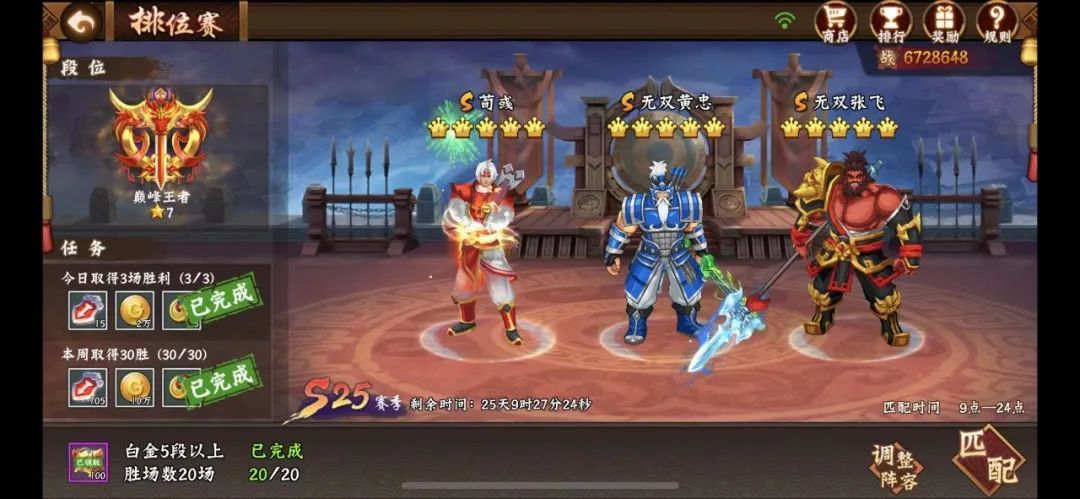 当前试炼30层轻松通关。可能是本周的词条比较简单,在新武将无双黄忠的助力、和搭档的给力下可以轻松挑战30层。当然翻车的时候也非常欢乐。排位上巅峰可以,但是追求更多的星星就是大佬们的事情啦。