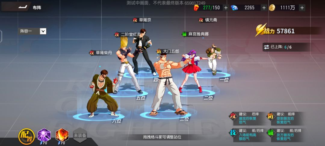 一般情况,在前期资源不够充裕的情况,推荐主力培养草薙京(主C)以及麻宫雅典娜(治疗)即可,之后再有富余且没有上位替代的情况下可以尝试养成次序列的格斗家。