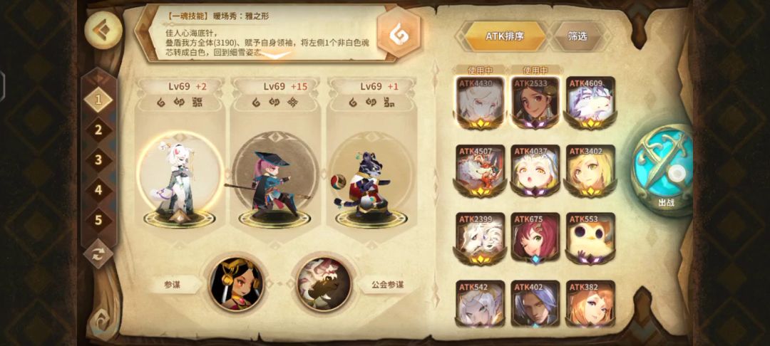 重点来了,我没有泉SP所以我用的是千雪,千雪的转魂其实是和汀朵伊姆SP相撞了的但是有一点,只要左边开局有一个白色魂千雪就可以直接一四魂了,好你们就会说那不就是两回合屁都没干,NoNoNo千雪四消可以触发汀朵伊姆的一消然后将右边四个非黑色魂转黑,什么概念呢?只要右边六个魂有两个黑我就可以直接二四消了,如果运气真的差到炸,右边六个中没有两个黑,全面板也找不到一个二消,那身上有再生的话直接四消,没有的话就连续两次二消,第一次二消触发尧一消千雪一消然后自己获得再生触发一消(这里注意一下,千雪一消因为会触发两次所以自带两层领袖,并且这时候拥有嘲讽的尧就已经有百分之60的减伤,千雪和汀朵伊姆百分之30减伤,并且全员都会拥有一层巨厚的盾)然后打四消,身上有再生加成再加上领袖,那一棍子下去至少十几万的破甲伤害然后四消的被动再次触发二消然后活动再生触发一消千雪和尧也会触发一消,导致左侧两个魂必定会转白色的然后就可以再次千雪一四汀朵伊姆二四(或者二二消)就这样可以一直无脑下去。