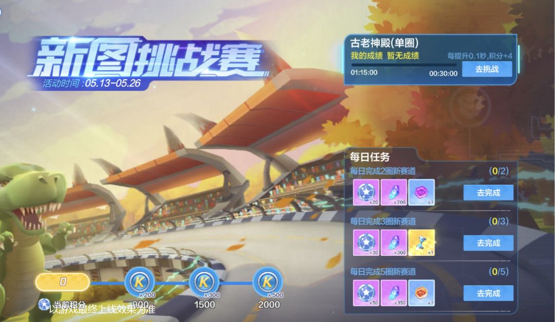 神秘而又庄严的古老神殿里面,藏着怎样的罕见景象呢?在这座需要飞驰,才能体验到生动景色的神殿里面,又会有着怎样多的赛道高手呢?5月13日—5月26日,古老神殿新图挑战正式拉开帷幕!