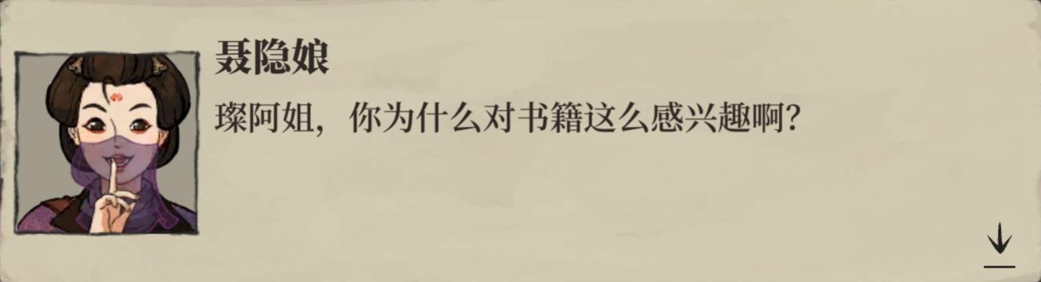 卢璨仔细观察着书本,连聂隐娘悄悄离开也没发现。