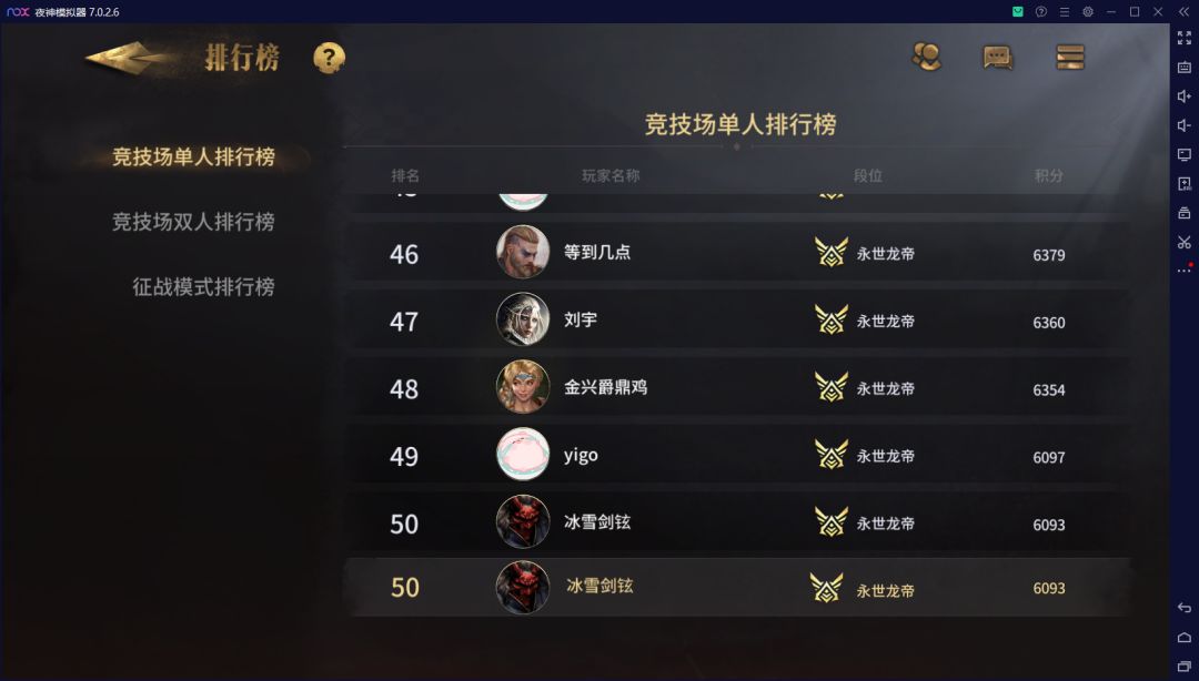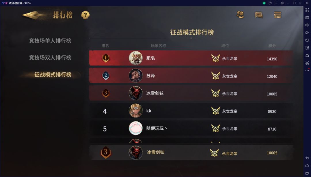 作为贯彻一年烂分思想、全服第一烂分玩家、【全面冲锋】烂分理论奠基人、麋鹿附体第二人的冰雪人,在初步忙完新人指引文档编写,完成征战模式上1W分第一人的目标,完成对征战模式万分系统评测后,开始评测竞技场1V1模式,于今日以100%胜率,64%夺冠率上排行榜进入前50名,为自己可喜可贺。