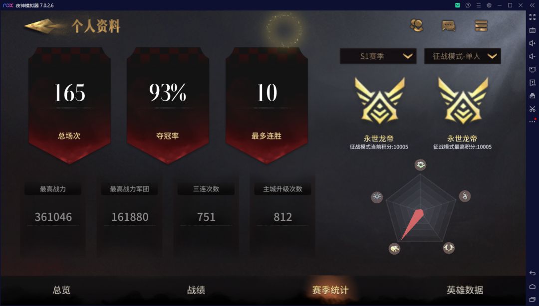 首席百夫长:夺冠率100%,胜率100%,场次1