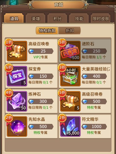 ◆ 新增【特权折扣商店】,在主城【商城】入口中进入,商店提供超值折扣商品,部分在特权有效期间内可购买。