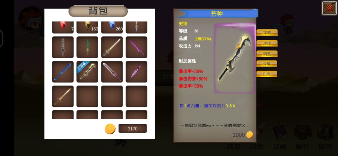 芒种毕业武器,应该是加成最高的了,我才400力一个天外飞仙81w伤害,直接秒掉最终boss