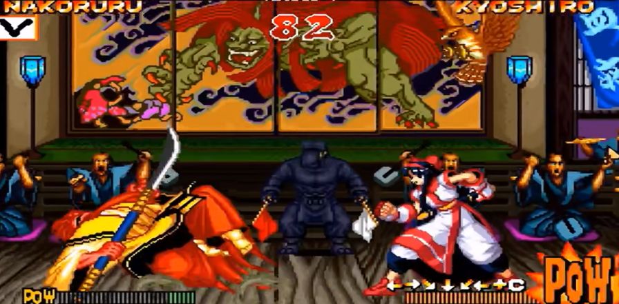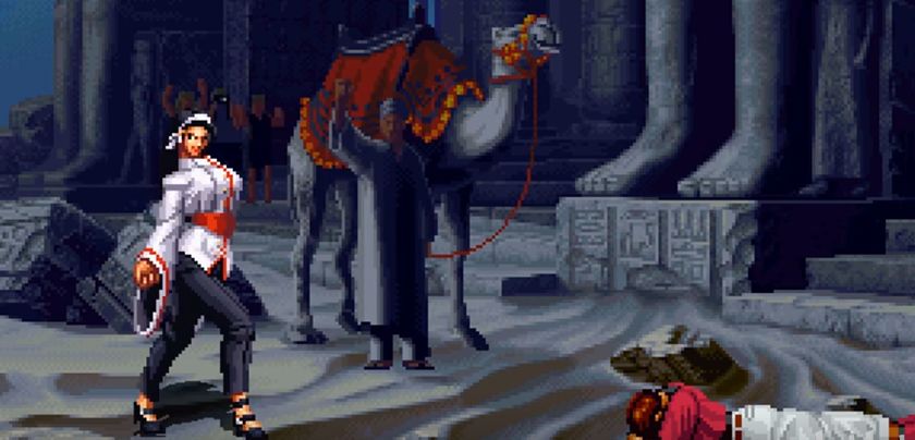 同样是巫女,不同的是在《拳皇》里的神乐千鹤就没有小夜那样傲人的身材了。但身材的缩水不代表巫女能力的下降,相信很多拳皇玩家也都注意到了,神乐千鹤在面对大蛇八杰集成员时,经常会拿出一个幡晃来晃去,动作像极了一位神婆,十分搞笑。
