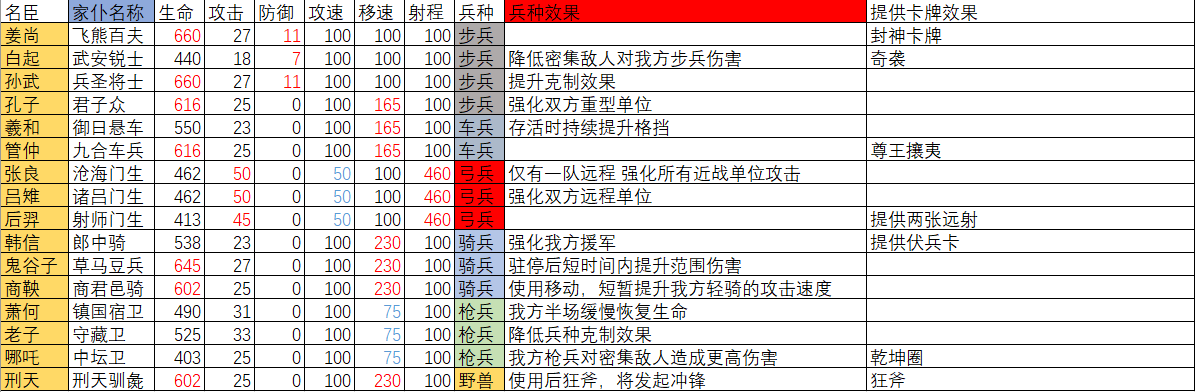 家仆提供的效果分为卡牌和兵种,有些名臣两者兼具,有些名臣只提供一种。但提供卡牌的相对强势。