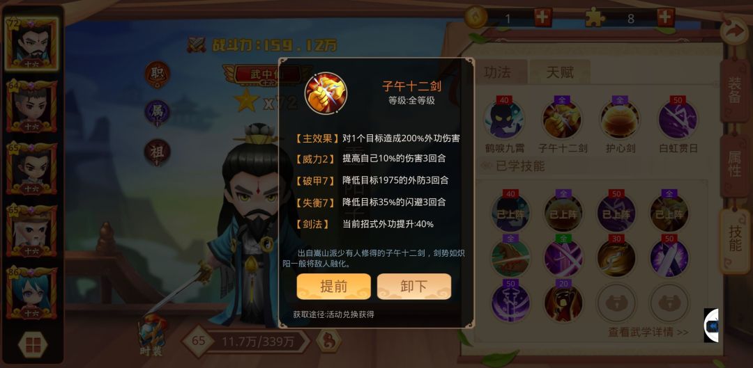 适用于王重阳,主角,过儿(版本热门侠客)侠客可以一直带到65级。