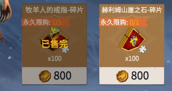 牧羊人的戒指100碎片*1 庆典币消耗800