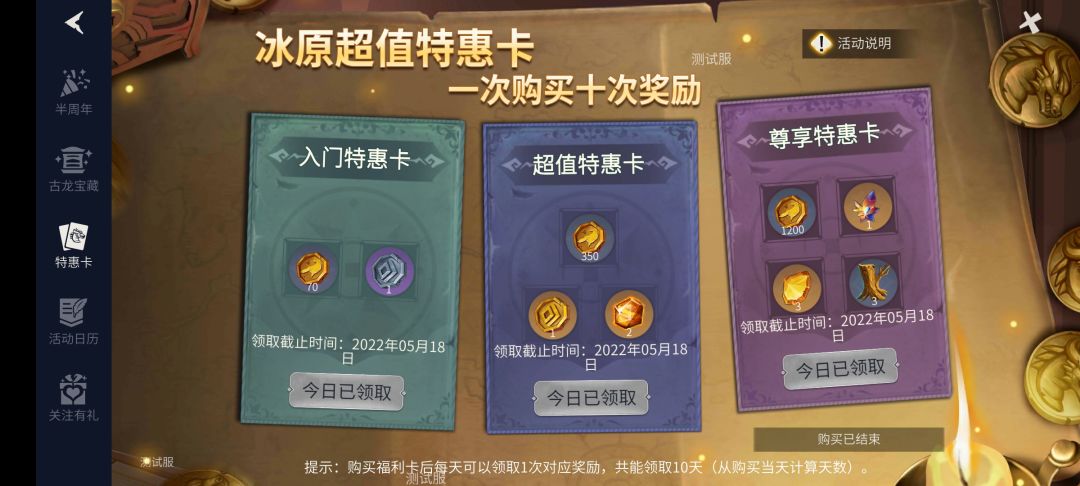 ④:充值特惠卡,特惠卡均持续十天
