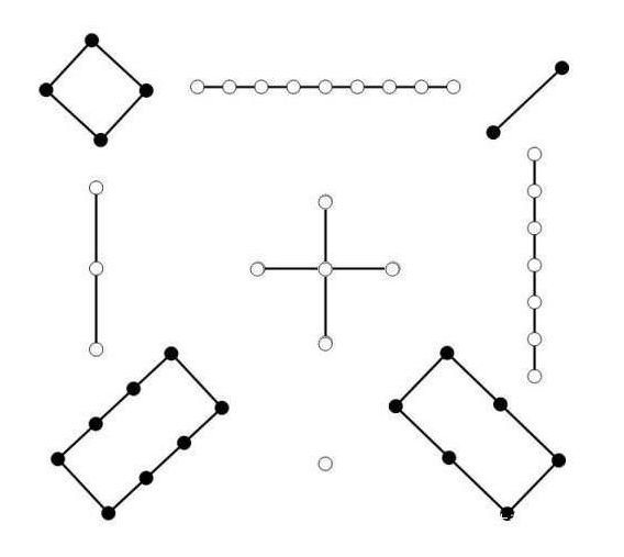四黑四白,交叉占位,正好呼应八名黑白婢女所站的方位,中宫的这个五,是黄衫女子的位置,或许是金庸老爷子有故意为之吧。
