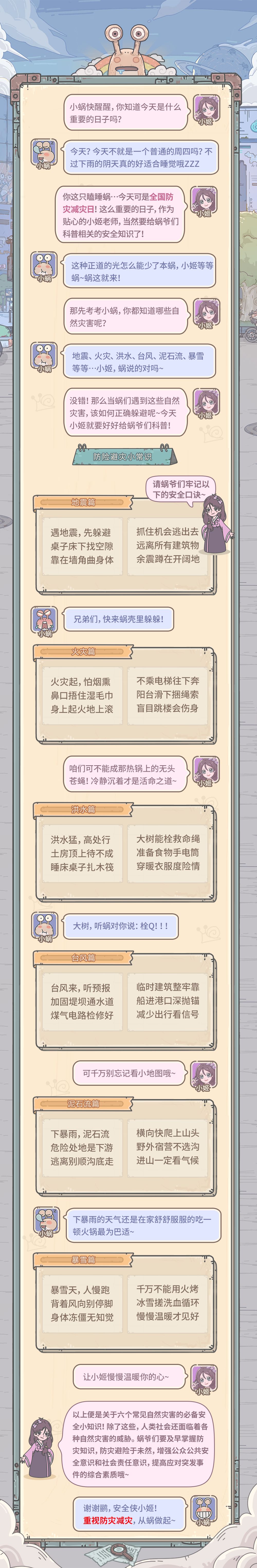 今天就让我们的小姬老师带蜗爷们,了解防灾减灾的必备小知识,一起减轻灾害风险,守护蜗们的美好家园~