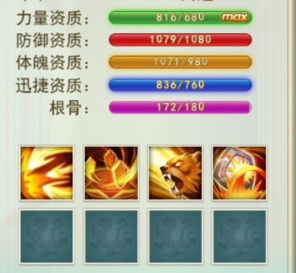 这样的话,你合成的宠物最多只能吃10个对应丹药,再加100资质,会不会出现MAX,自己可以算一算!尽量需要的属性达到或接近MAX!