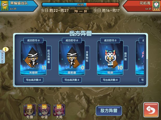 商会战一个先锋可以被挑战几次,我被挑战五次还没换到第二个中坚。