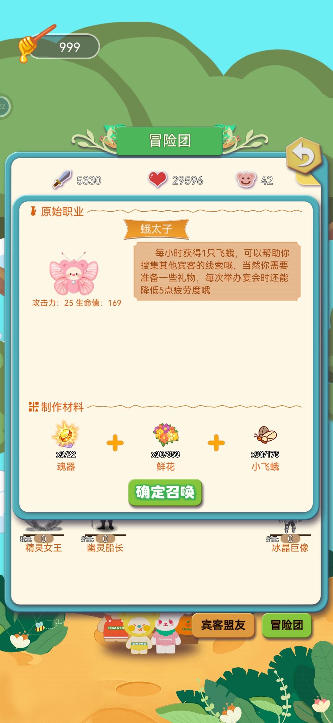 技能:①冒险团的最大生命值提高20%