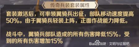 兵装属性:套装激活后,可率领翼骑兵出征。