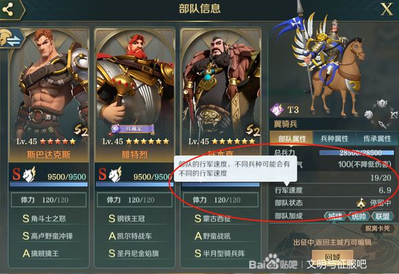 兵种作用:主要用来破坏敌军指挥所。原因在于,普通部队破坏指挥所后,会被附加10分钟的负面buff(移动速度减低20%,在敌军区块内无法进入急行军),翼骑兵有50%移速加成,能够抵消破坏指挥所带来的负面buff。