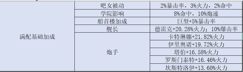 接下来考虑一些满配基础加成(吧女被动、学院影响、船首楼加成、舰长及炮手加成)我这里并没有考虑炮手的技能,因为炮手的技能释放没有确定的时间,无法定量分析,所以这篇帖子无法作为实战的参考,实战有更多的因素需要考虑(船速、防御、走位、角色生存技能的选择、炮手技能搭配等等)。舰长装备先贤之誓+141统帅、鱼龙袋+145统帅、蛇发女妖盾+65统帅;卡特琳娜装备猩红酒杯+141专注、琅琊玉+138专注;伊里奥诺装备礼部玉牌+136专注、缡纹金簪+150专注;塔伯装备少林棍法+83专注、思念之心+83专注;罗斯门泰特装备八音琴+83专注、古韵尺八+81专注;坎斯特洛伊装备烘培铲+13专注、所罗门护肤+13专注。