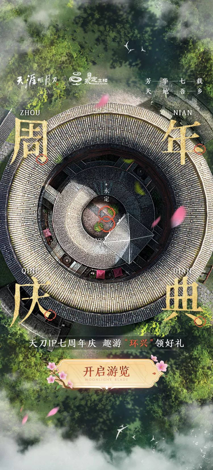 花开七载,“环”聚永定。天刀线下携手永定客家土楼共庆七周岁生日,5月28日相约星河巨幕看直播庆周年,获取最新爆料与海量庆生福利,宴请全服少侠共赴年度狂欢!