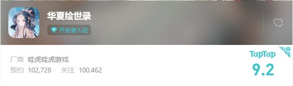 )不知不觉我们的虾滑,啊!不! 咳咳... 我们的首个项目,“华夏绘世录”预约数破了10万。万万没想到有这么多人在等待我们的游戏。感谢大家的关注,我们还在努力的开发中,希望不会辜负大家的期待。![[嗒啦啦2_爱你]](https://img.tapimg.com/market/images/2d3f78b12a414a0e6900d44a80a35ce3.png)