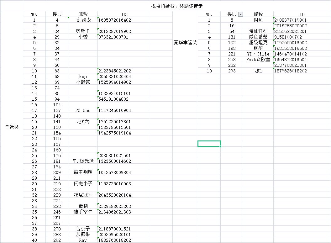 幸运奖中奖楼层没有回复昵称和ID的大大,请在3天之内回复一下哦~