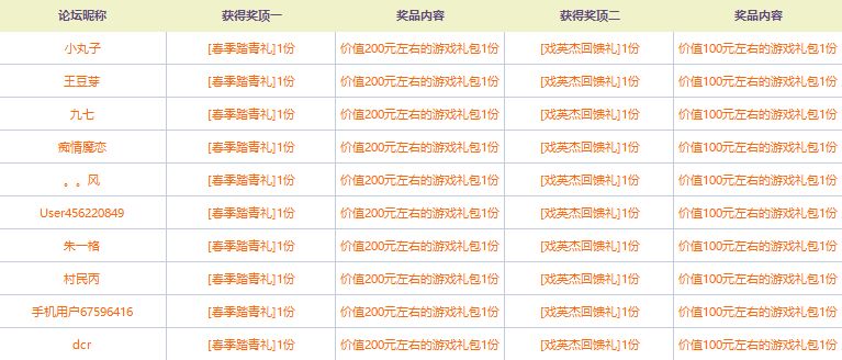 感谢大家参与本次活动,今日公布以下玩家获得本次活动的奖品!