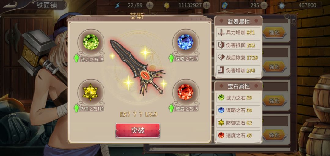 第二个图,宝石属性的防御和谋略反了。