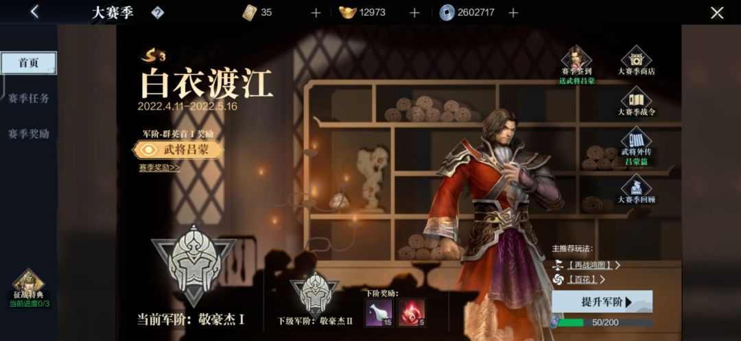 以上就是吕蒙的全部攻略啦,目前小霸王们可以通过S3大赛季活动来免费获得吕蒙的武将碎片与专属战魂,同时提升大赛季军阶,还可额外获得一定的吕蒙碎片,喜欢这位武将的小伙伴,快快参与大赛季活动吧~