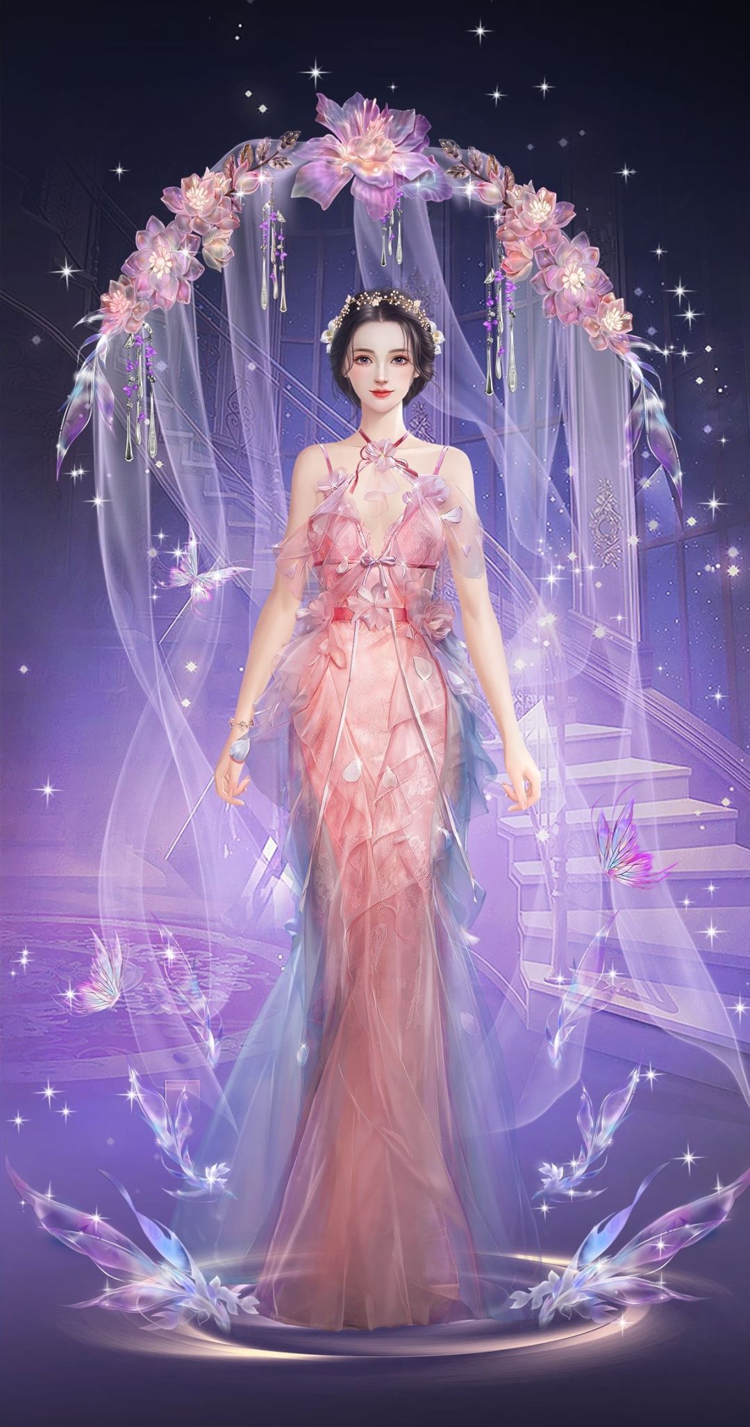 粉色薄纱袭裙而下