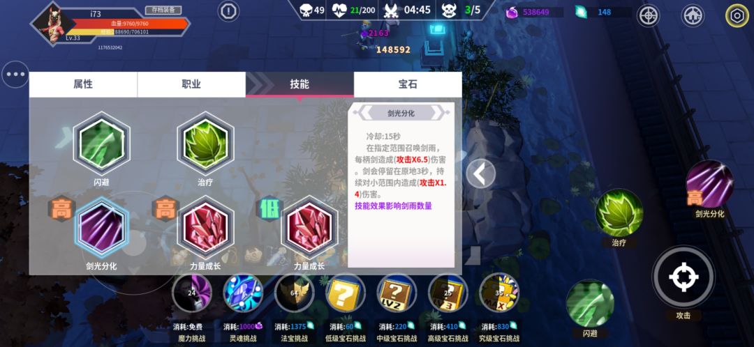 主动技能: 金光 剑阵 闪电 都是首选 (没有的话可以攒一攒灵魂去商店兑换)
