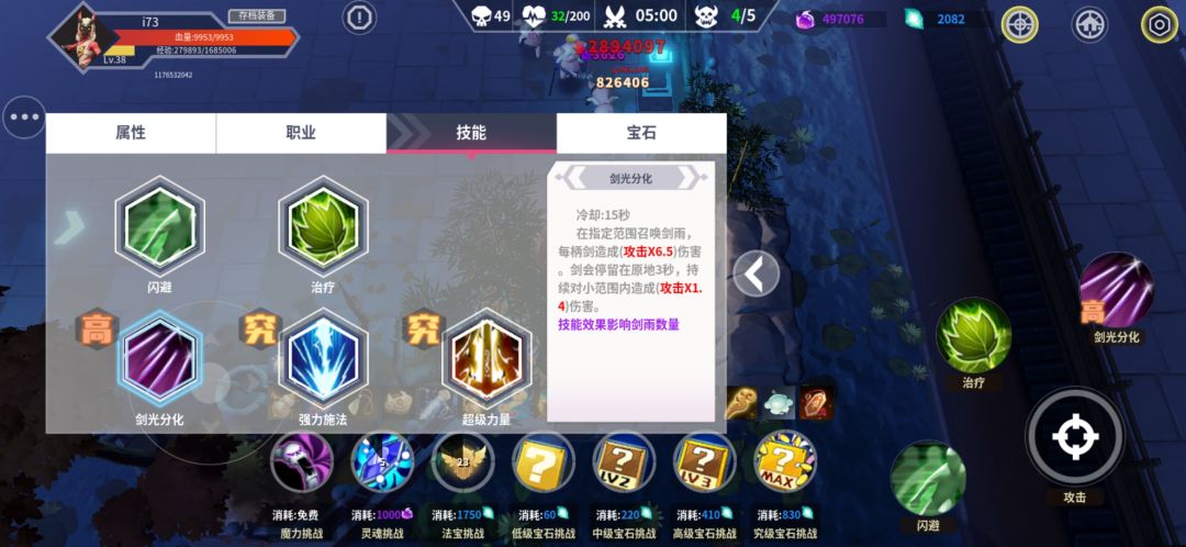 这套技能主要吃的就是攻击,不要说什么攻击太高没啥用, 低了你就是在给boos刮痧。