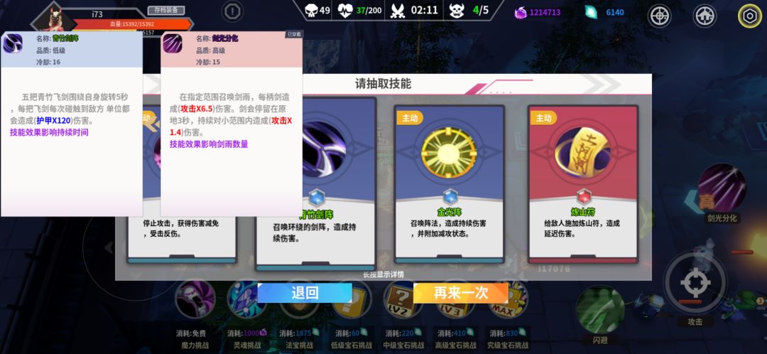 开局小怪会掉落主动和被动技能书 (加粗)最好选择一个持续时间较长的或者攻击力比较高的主动技能 (可以长按看技能介绍)