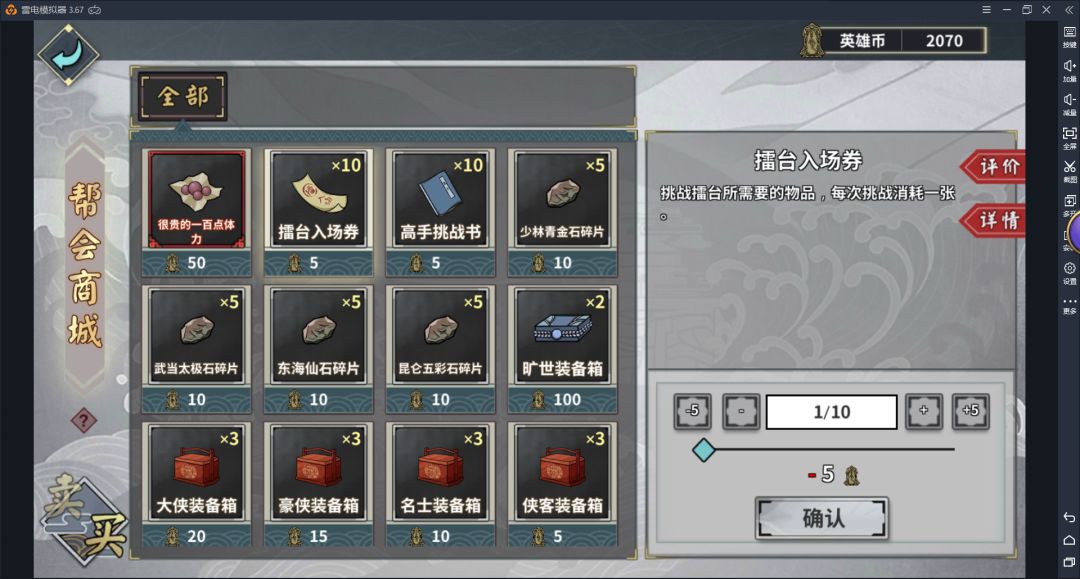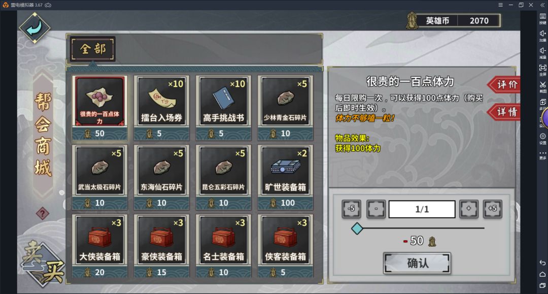 3.帮会帮会英雄币可以购买100点体力