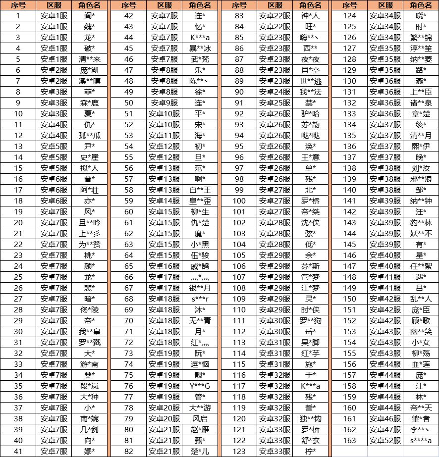 在5月13日,我们监测到有部分侠士存在违规行为,包括:利用游戏漏洞,复制与生成物品、在游戏内外传播恶性Bug。为了净化游戏环境,维护公平和谐的游戏氛围,我们现已针对这部分侠士视情节严重程度进行封禁处理,情节严重者我们还将采取相应的法律措施。以下为详细的封禁名单: