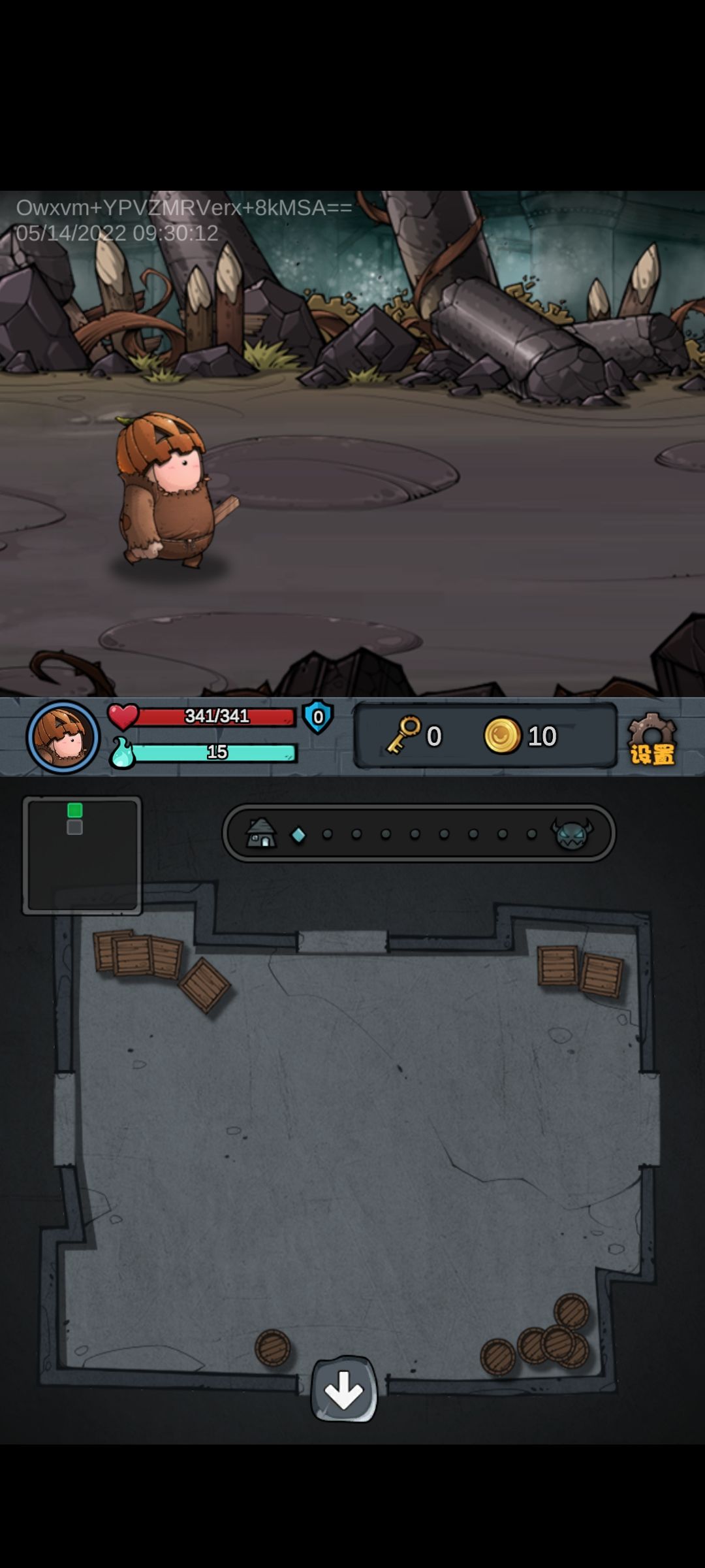 为游戏画面,红色生命蓝色的法力值点击旁边的头像可以看到刚才的属性,头像下面是小地图白的的为未去过或者还有可以东西可以探索的房间,灰色为去过的空房间,地图旁边为目前的楼层,下面的箭头为你可以选择去下一间房间。