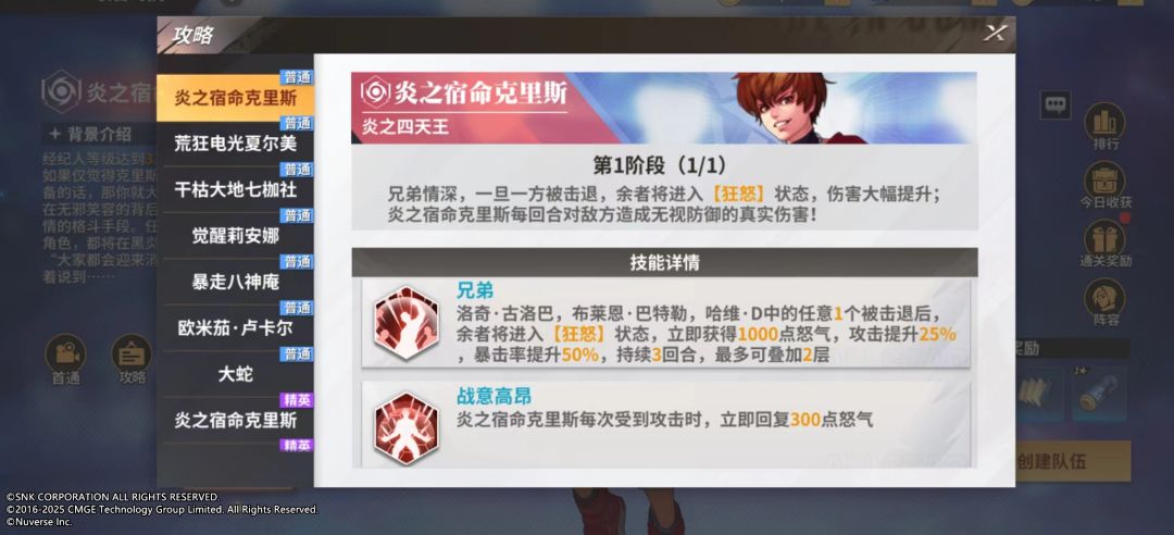 八神流在普攻时概率回复怒气,可配合具有回怒加速特性的格斗家使用。推荐携带:枫、布鲁·玛丽、安迪、琼、千两狂死郎、觉醒莉安娜等。