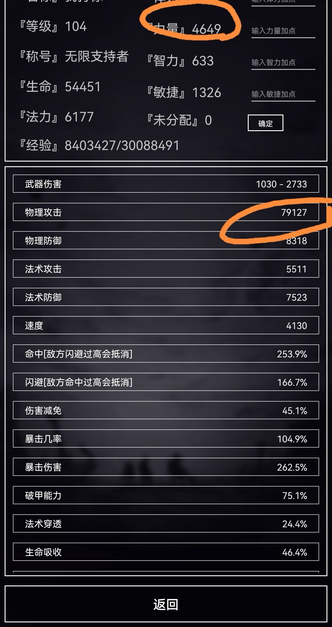 那么你升了一级,获得5点基础属性,你选择,5力加点,那么你的各项数值是