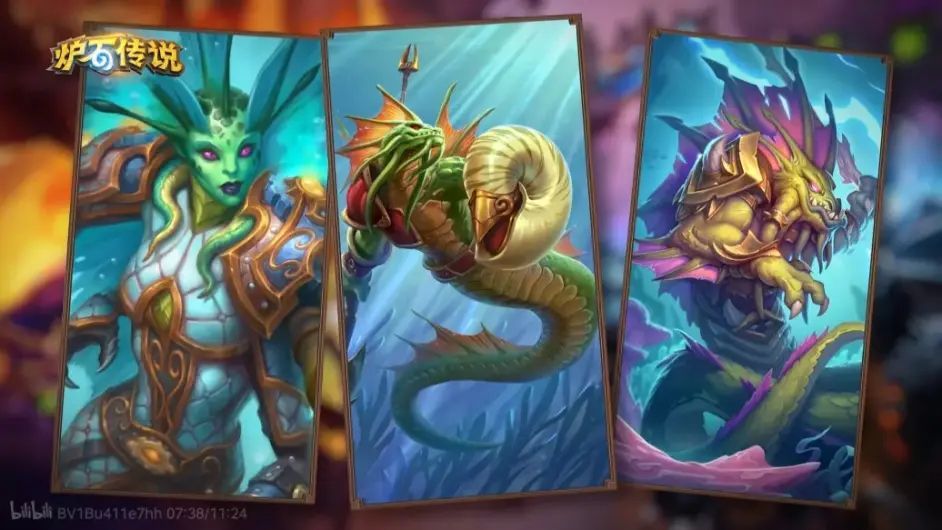 顺便再说2个带有特殊机制的英雄:口水鱼和沃金,这2个英雄可以将纳迦提供的塑造法术的临时效果通过吞噬或者交换身材变为永久效果,在版本未上线前大家就有很美好的畅想,但实际上看来无论是高分段还是中位局似乎表现都不是很理想,特别是沃金的均场排名都跌到4.5以下了甚至很难混进喝汤圈,个人感觉是由于这个版本高本纳迦核心提供的身材成长特别离谱(理想的完整体 2金海妖+2金潮汐主母+3法术随从一回合挂机不买怪都可以稳定提升+240+240),而这2个英雄没有额外资源、不能稳定找牌、也不能快速跳本,在低本吃来吃去换来换去也终究是小打小闹。