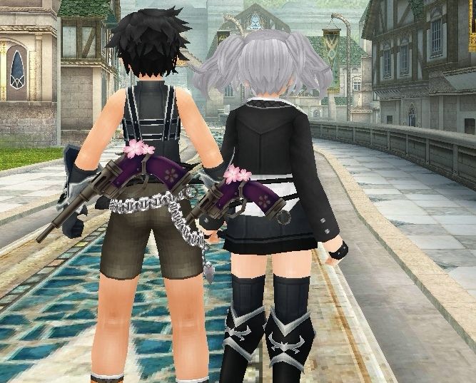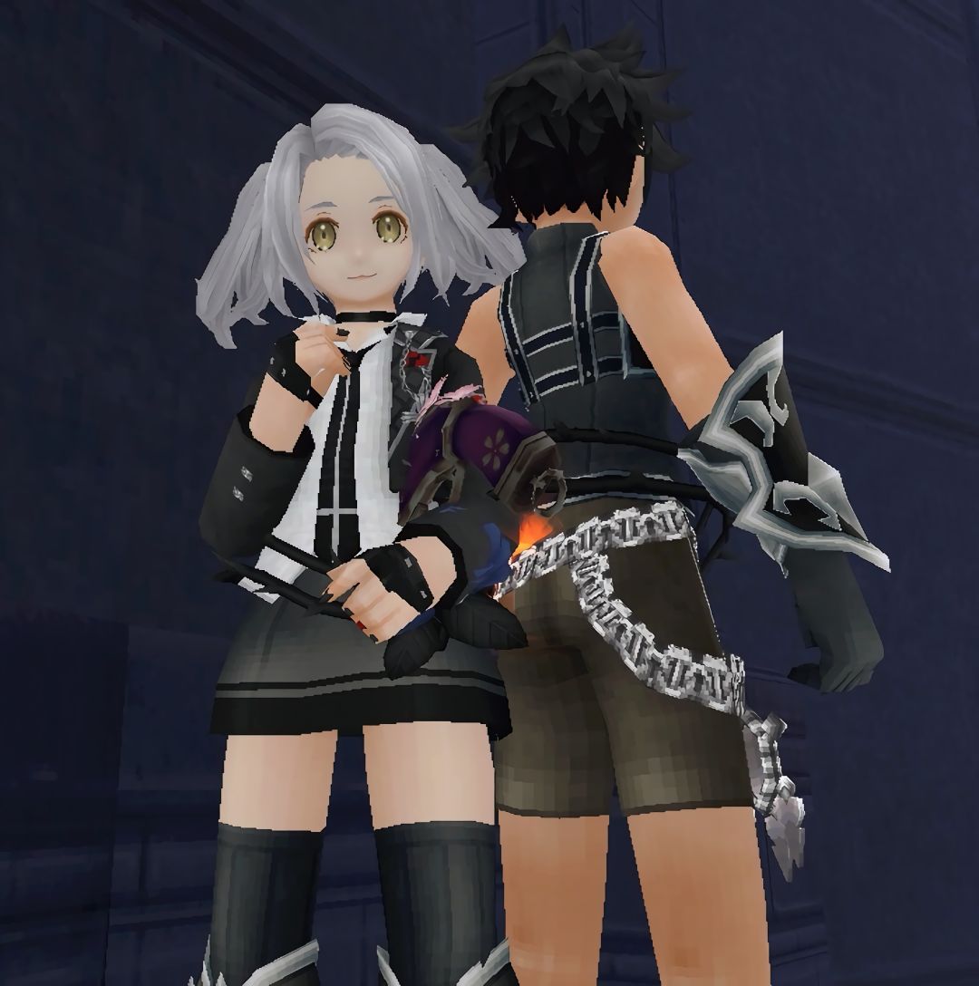 下身给女儿,上身给儿子,超好看诶!(女生是包臀短裙加黑袜,男生是背部绑带加露肩)可惜我没有弩黑染,这个花花有点不协调hhh