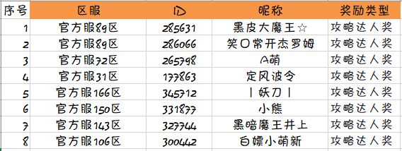 攻略达人奖(8名):(勾玉x5000+高级祈福签*30)