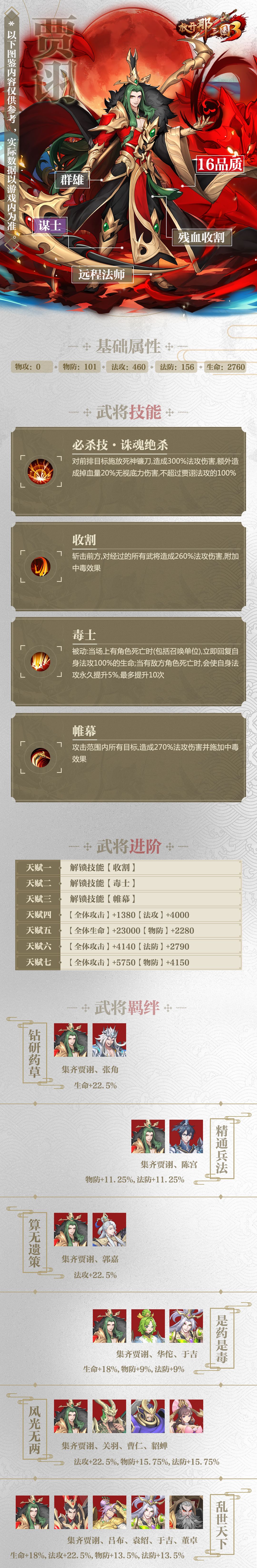 武将图鉴☆《放开那三国3》群雄「贾诩」技能属性羁绊介绍