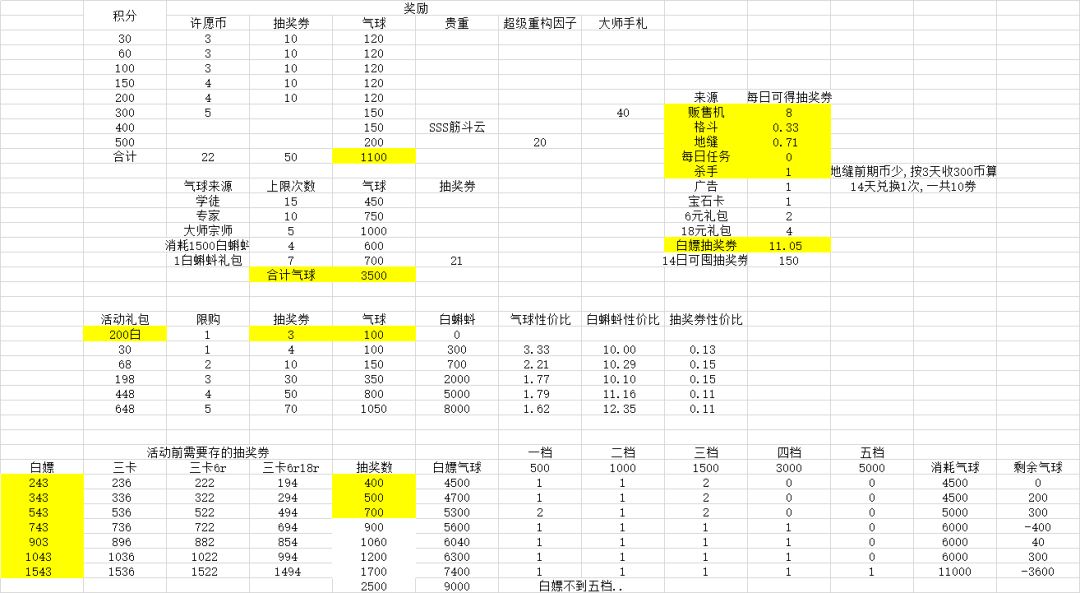 1.只计算了商店,每日任务,月卡等的抽奖券, 其他像探索,大礼包还有其他乱七八糟的来源没有计算,所以实际需要的券会更少一点。