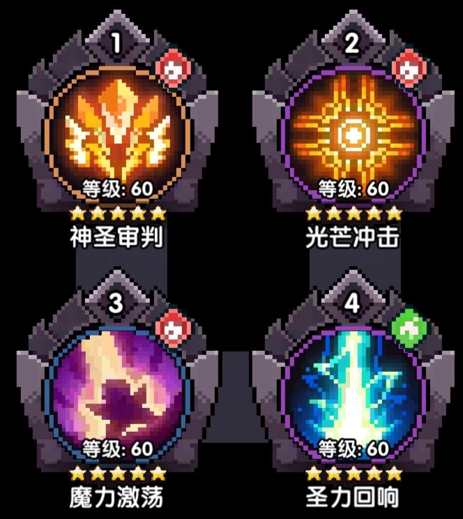 优先点满,配合技能“圣力回响”实现一秒一个技能
