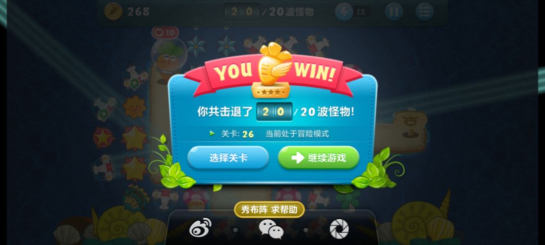 终极挑战26,无伤全过,道具全清。先种后面的箭,把五角星宝箱打出来,再种前面的箭,把火箭打出来,之后就清道具和宝箱,把边边角的蘑菇种出来升顶级刷钱,还能减速。先升级火箭,有钱了把所有地方种飞机,全部升顶级,冰霜也可以升两个顶级。最后面20关的大boss血很厚,把五角星删了种飞机,把前面的火箭删了全升级后面的飞机,把大boss拿下