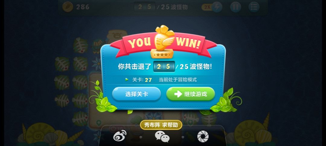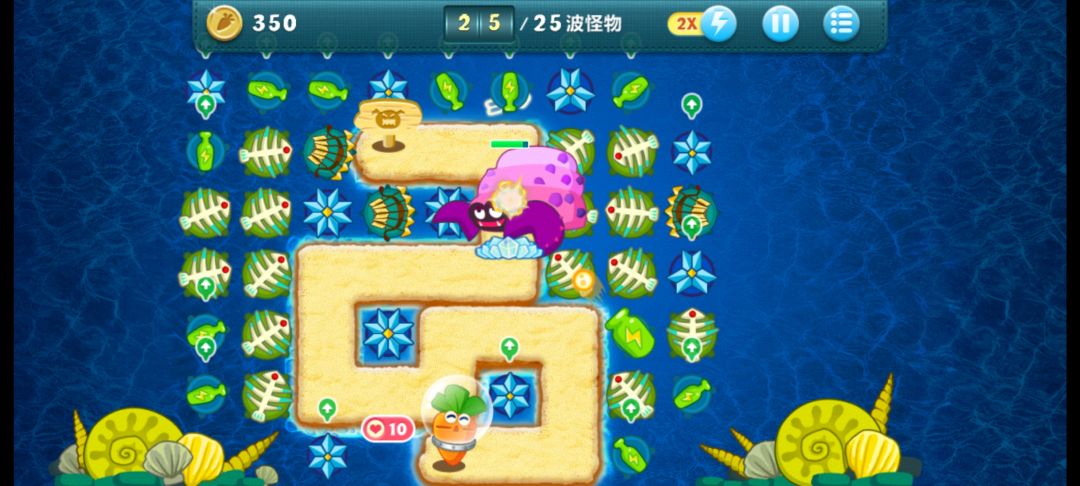 终极挑战27,无伤全过,道具全清。后期慢慢把瓶子换成鱼刺,一定要升顶级,没有升顶级的资金不要把瓶子全卖了,因为还要补点伤害。中间几个冰霜都要升顶级,道具可以用小瓶子慢慢打,不要升顶级打。十级前一定要种出四个以上的顶级鱼刺,因为第十关有个大boss血很厚。