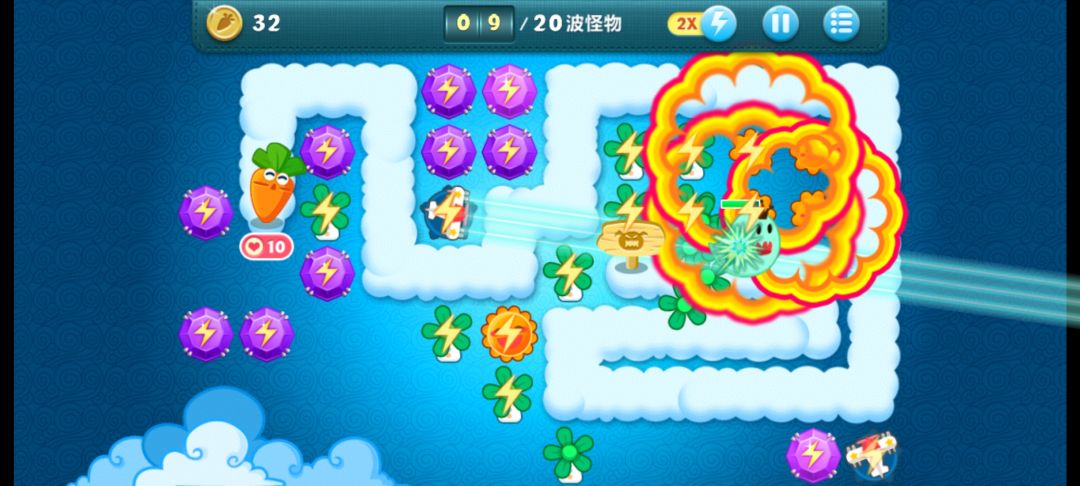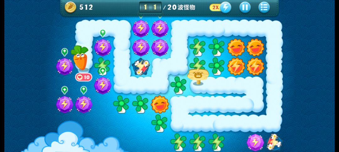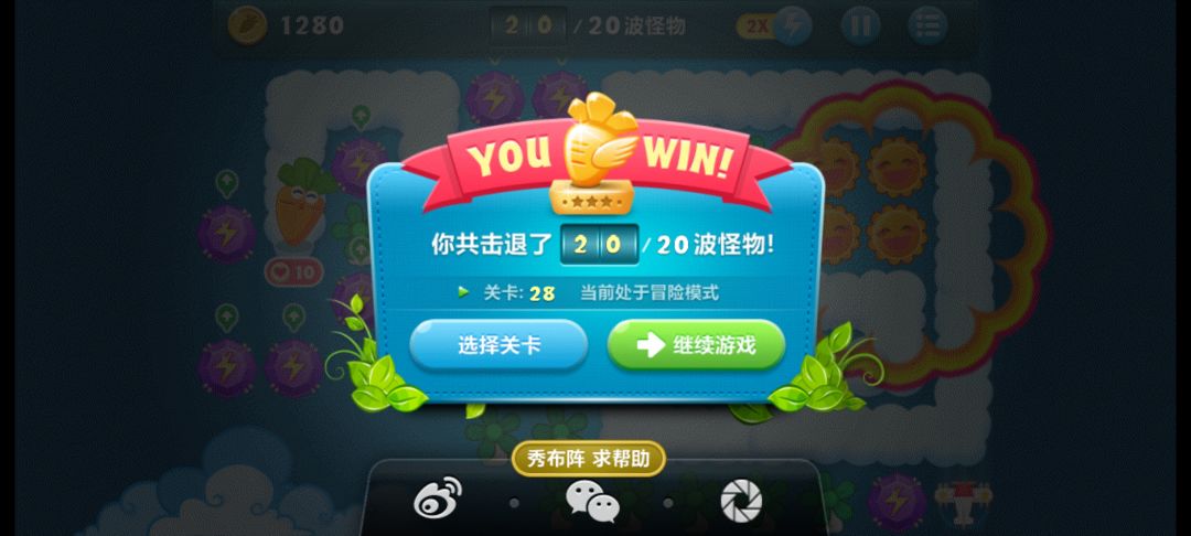 终极挑战28,无伤全过,道具全清。先出风车,把飞机打出来,然后飞机打中间的云,就可以把右下角的飞机也打出来,右下角飞机先满级,左上的飞机先打别的箱子慢慢打宝箱出钱。再种风车,要升满级,太阳也升级,宝石只用升左上和右下两个满级的就都能覆盖住