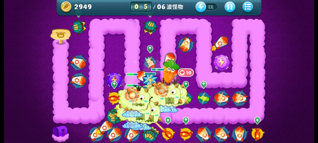终极挑战29,无伤全过,道具全清。左边右边火箭先出,打中间的云,把冰霜先打出来升满级,然后火箭全种,升满级。宝石种两个左中右中,升满级。四五波全是大怪,升级的手速要快,全是钱。