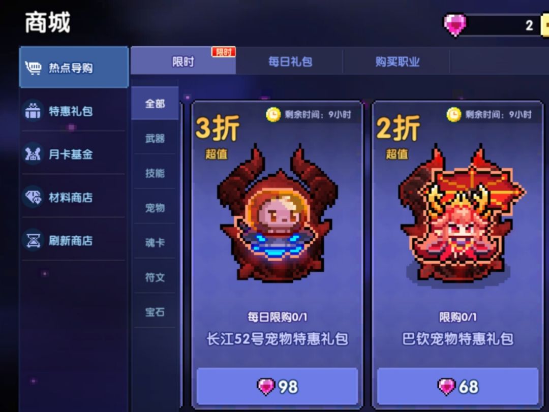 热点导购的宠物68一只限定宠物 128三只限定宠物。现在这个截图不是哦,但是可能出现在周年庆 618 双11 双12会有,这个时候就是拉满限定的时候。98就别买了